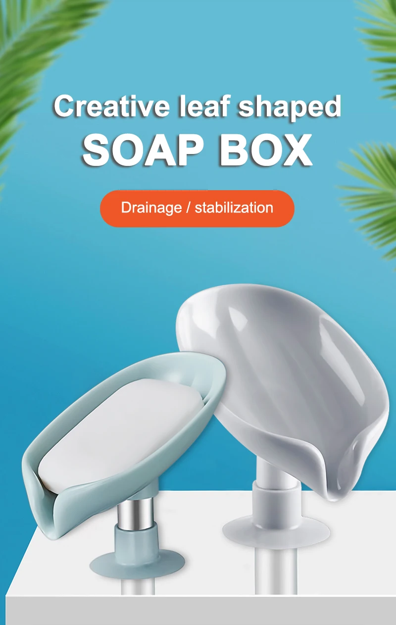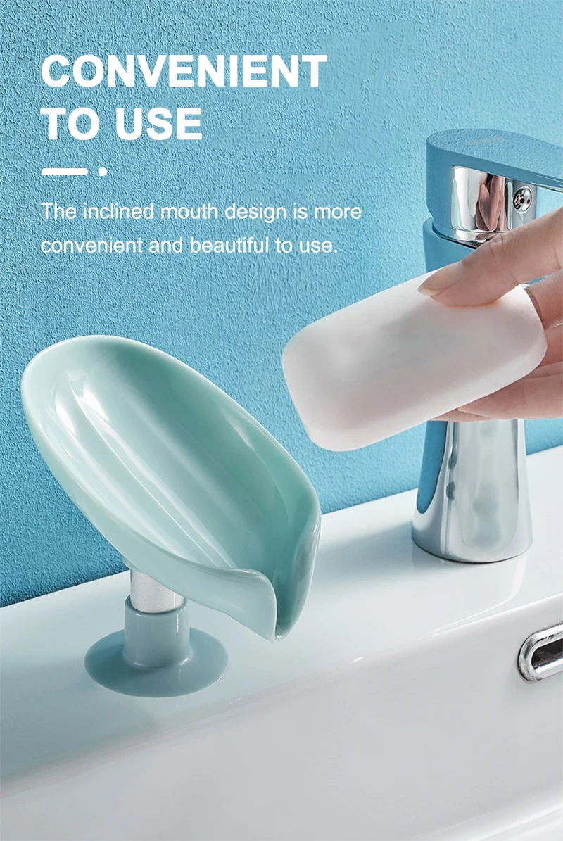 Leaf Shape Soap Box Drain Soap Holder Box Bathroom Shower Soap Holder Sponge Storage Tray Creative Sucker Soap Box Storage Box