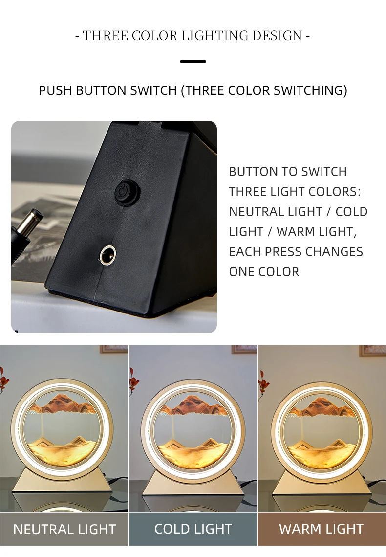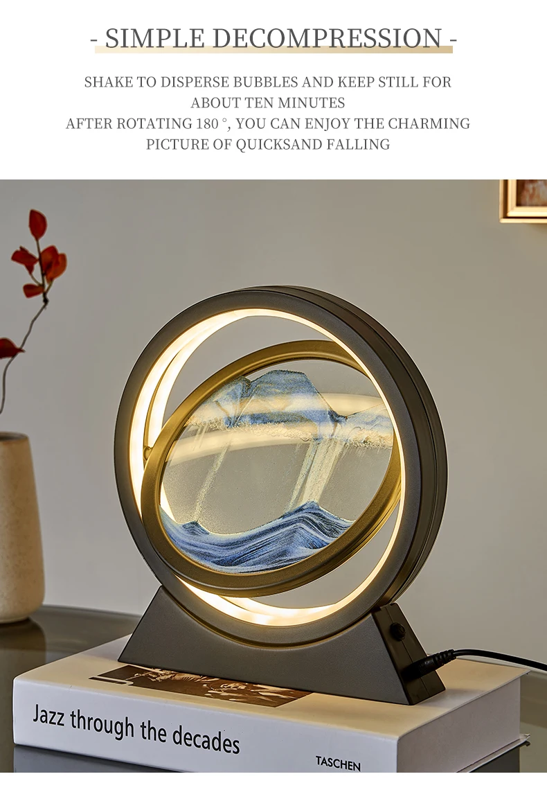 LED Light Creative Quicksand Table Lamp Moving Sand Art Picture 3D Hourglass Deep Sea Sandscape Bedroom Lamp for Home Decor Gift